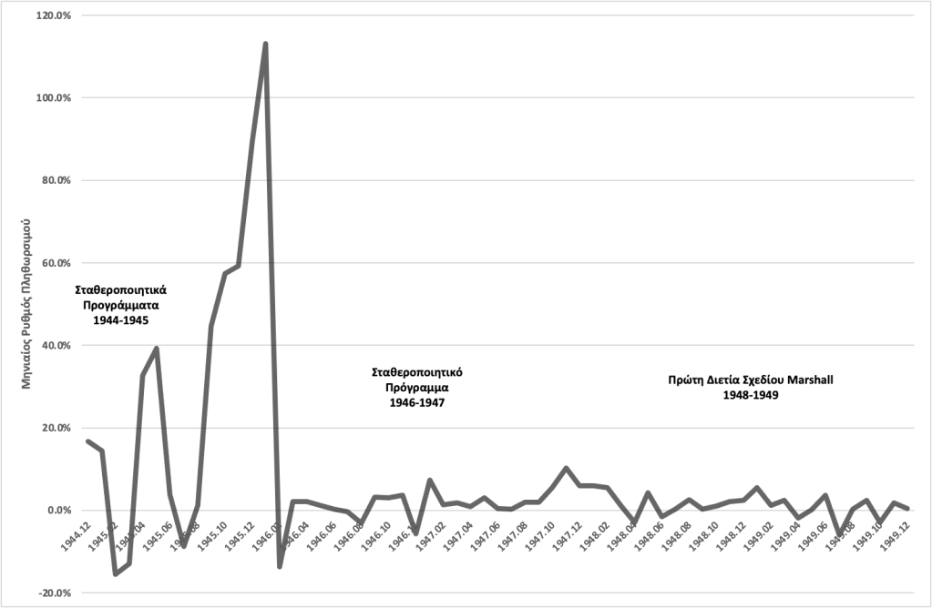 Μετά την κατοχή η χώρα είχε ανάγκη από ταχεία οικονομική ανασυγκρότηση και αποκατάσταση της νομισματικής σταθερότητας. Λόγω του εμφυλίου πολέμου και των συνεπειών του για τα δημοσιονομικά ελλείμματα και την αποκατάσταση της γεωργικής παραγωγής και των συγκοινωνιών, η πορεία της νομισματικής σταθεροποίησης υπήρξε εξαιρετικά βραδεία, ενώ μεγάλες δυσκολίες συνάντησε και η γενικότερη οικονομική ανασυγκρότηση. Χρειάστηκε μία νομισματική μεταρρύθμιση και τρία διαδοχικά σταθεροποιητικά προγράμματα προκειμένου να καταπολεμηθεί ο υπερπληθωρισμός που είχε κορυφωθεί κατά το 1944.