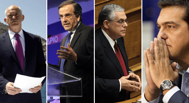 Μέσα σε οκτώ χρόνια, υπήρξαν πέντε διαδοχικές κυβερνήσεις, του Γιώργου Παπανδρέου (ΠΑ.ΣΟ.Κ), του πρώην κεντρικού τραπεζίτη Λουκά Παπαδήμου (συγκυβέρνηση ΠΑ.ΣΟ.Κ, Νέας Δημοκρατίας και Λ.Α.Ο.Σ), του Αντώνη Σαμαρά (συγκυβέρνηση Νέας Δημοκρατίας, ΠΑ.ΣΟ.Κ και, για ένα διάστημα, ΔΗΜ.ΑΡ) και δύο του Αλέξη Τσίπρα (συγκυβέρνηση ΣΥ.ΡΙ.ΖΑ και ΑΝ.ΕΛ).